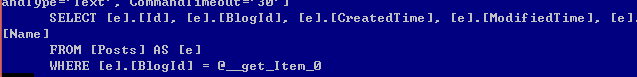 除了通过如上配置外导航属性必须用virtual关键字修饰(如上示例类未添加,请自行添加),否则将抛出异常,你懂的。接下来在完全配置好延迟加载的前提下再来进行如下查询,此时在我们需要用到Posts时才会去数据库中查询。
