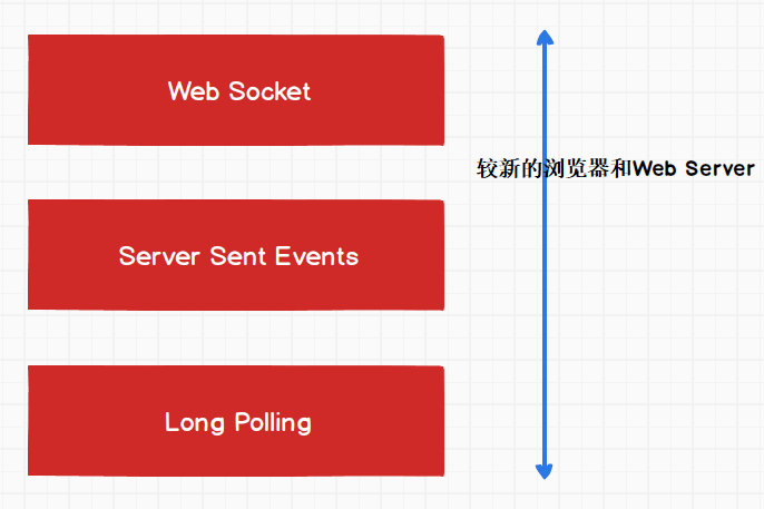 Web Socket是最好的最有效的传输方式, 如果浏览器或Web服务器不支持它的话, 就会降级使用SSE, 实在不行就用Long Polling.