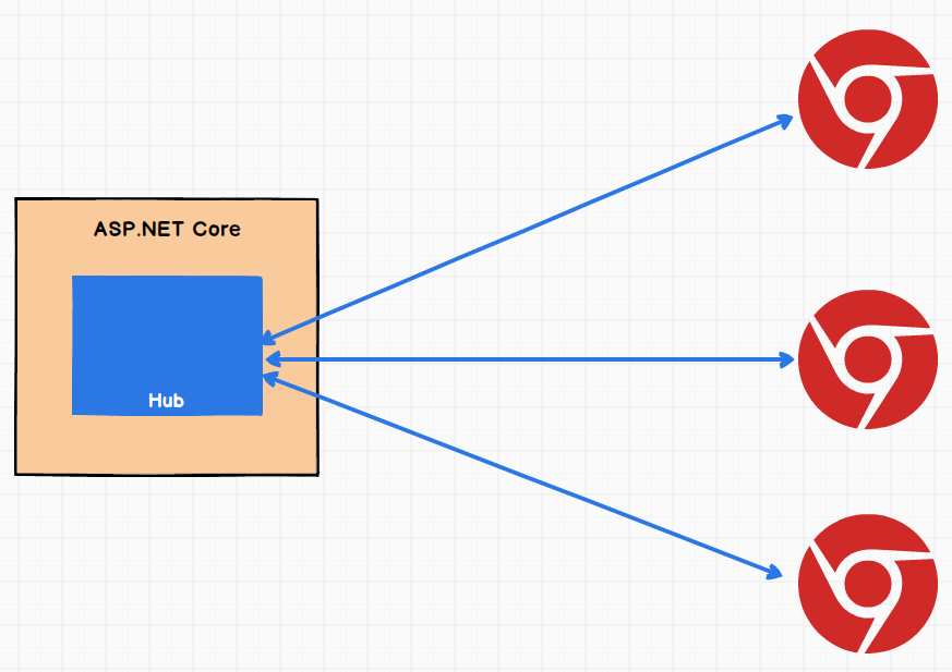Hub是SignalR的一个组件, 它运行在ASP.NET Core应用里. 所以它是服务器端的一个类.