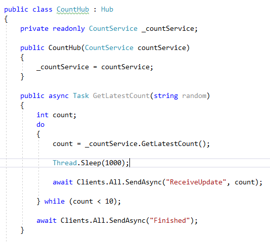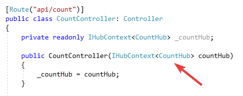 首先建立一个Controller, 并注入IHubContext<CountHub>: