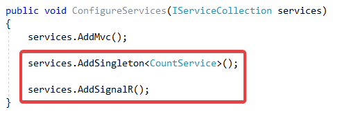 如果需要的话可以在AddSignalR()这个方法里使用lambda表达式进行一些配置.