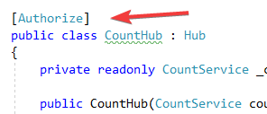 SignalR会采用ASP.NET Core配置好的授权和验证体系.