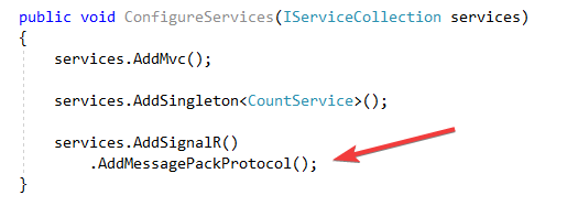 然后在Startup里面使用AddMessagePackProtocol()这个方法即可:
